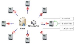 案例背景 某用电采集系统,为减少布线和施工的代价,计划使用无线采集方案。在方圆1km的区域,连接400块电表。基于国网电表通信协议,响应时间要求小于10秒。需要和某电表通信时: 先广播该电表号和请求命令,约20字节; 对应表号的电表根据命令发送回复帧,约100字节; 非该表号的电表不予回应。 通信拓扑如下图所示: 提取需求 因素 指标 距离 1000米,墙壁、门等会造成信号衰减 带宽 纯负载带宽:(20 * 8 + 100 * 8)bit / 10s =96bps,属于低带宽要求 功耗 要求,电表由市电供应,但数量庞大,节能意义重要。 规模 400个终端,中等规模无线网络 拓扑 唤醒下发+总线上报 成本 终端数量庞大,硬件成本要最低;不允许有流量费用。 应用LoRa系统 这是一个典型的“长距离,低带宽,低成本”无线网络,可以选用锐米LoRa第二代系统。 空中速率档位=远距离,低速率,可以发挥LoRa超长距离通信能力; 频率=470MHz,免费频段; 射频发射功率=20dBm; 终端节点个数=1(解释:400个终端共享总线,地址全部分配为0x0001) 单次上传最大字节=100 Slot时长=4000ms 注释:GetMinSlotLen(100, RF_SPEED_LOW,SYST_TDMA_WAKE)=3610 二次上报间隔=10000ms 唤醒data最大字节=20 唤醒ack最大字节=0 唤醒间隔=10000ms 注释:GetTime4WakeExchange(20, 0, RF_SPEED_LOW)=2083 唤醒间隔与带宽利用如下图所示: Read more.