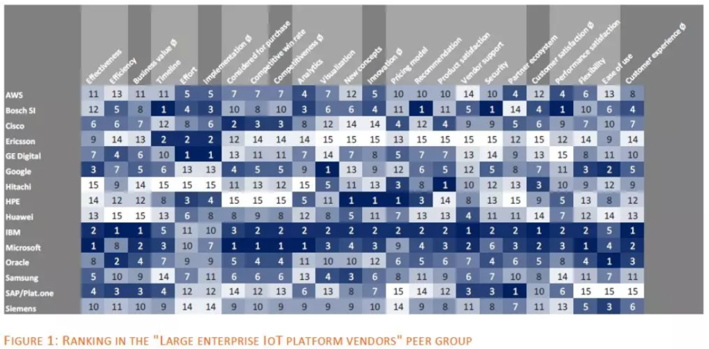 因为物联网PaaS平台的战略性地位,在teknowlogy最新一期的物联网年度调研中,邀请2,031名使用者对不同的物联网平台打分,最终的评分结果千差万别。